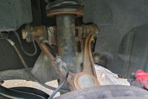 First, the wheels are removed from the vehicle and the body is masked to prevent overspray and dust from the cleaning process.